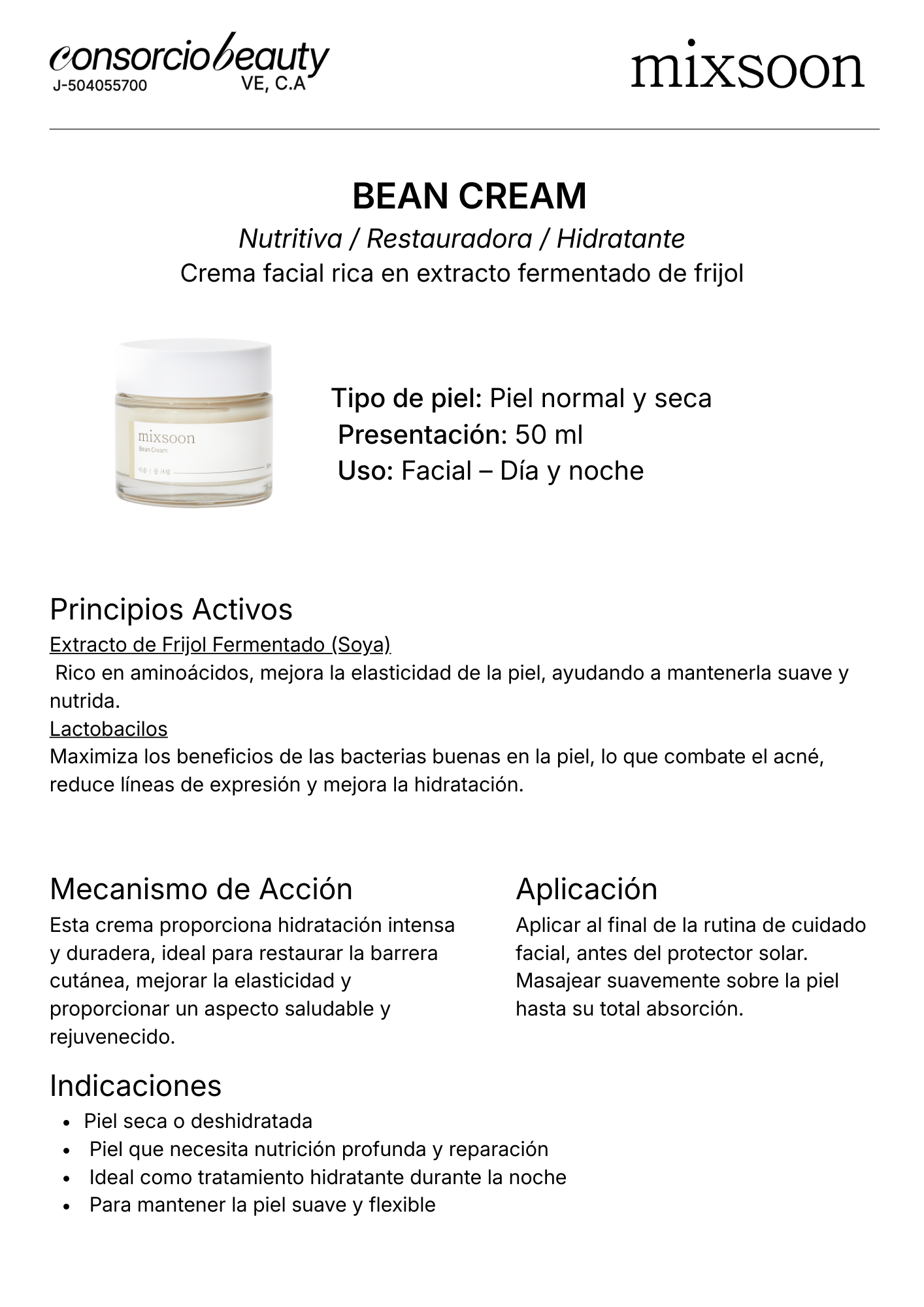 La Bean Cream de MIXSOON es una crema hidratante vegana que forma una capa protectora sobre la piel, ayudando a retener la humedad para una hidratación duradera. Su fórmula suave y espesa no deja sensación pegajosa, ideal para el cuidado diario.