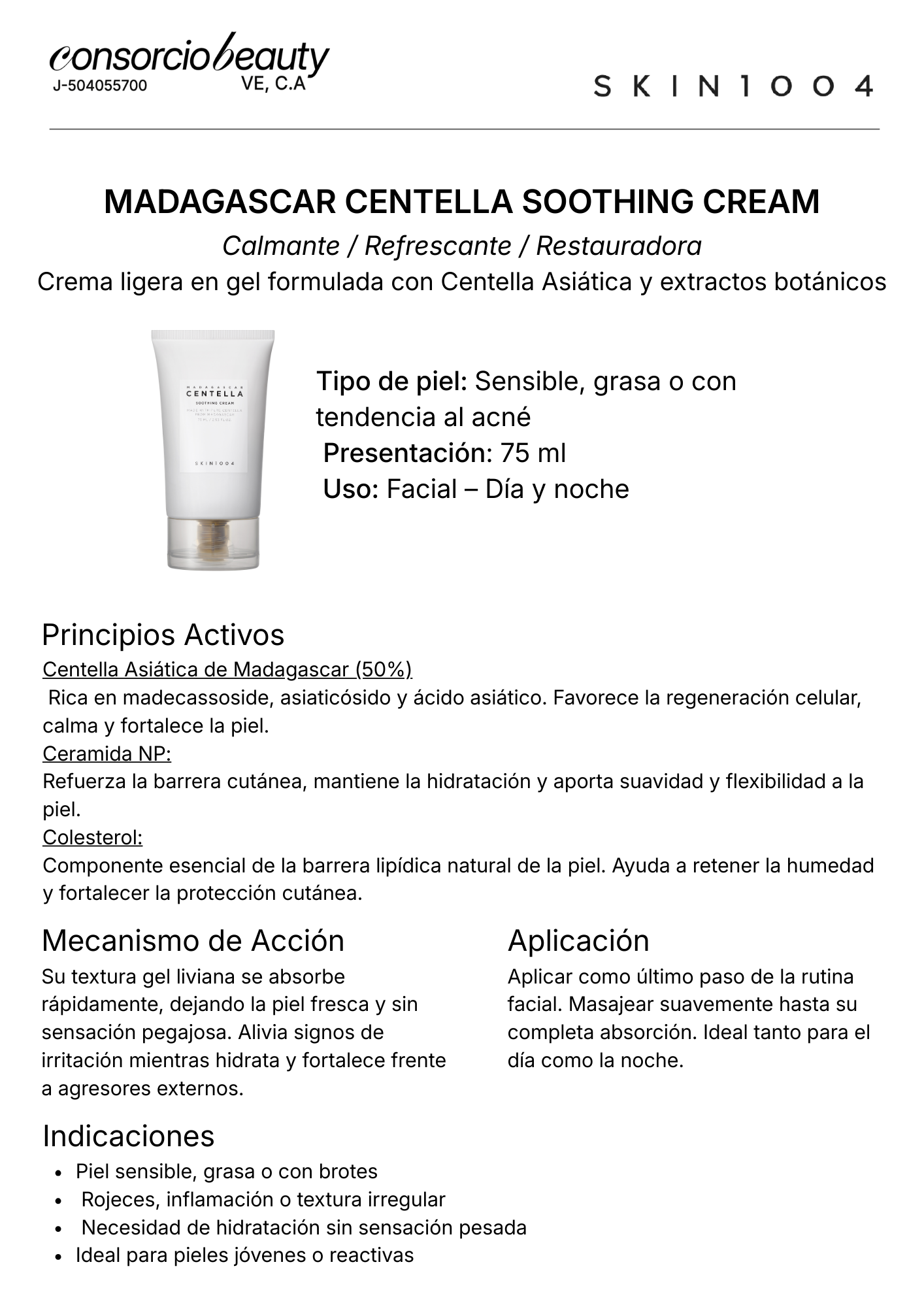 La Madagascar Centella Soothing Cream es una crema hidratante intensiva que calma, repara y fortalece la piel sensible o irritada. Su fórmula concentrada en centella asiática brinda alivio inmediato y mejora la función barrera con cada aplicación.