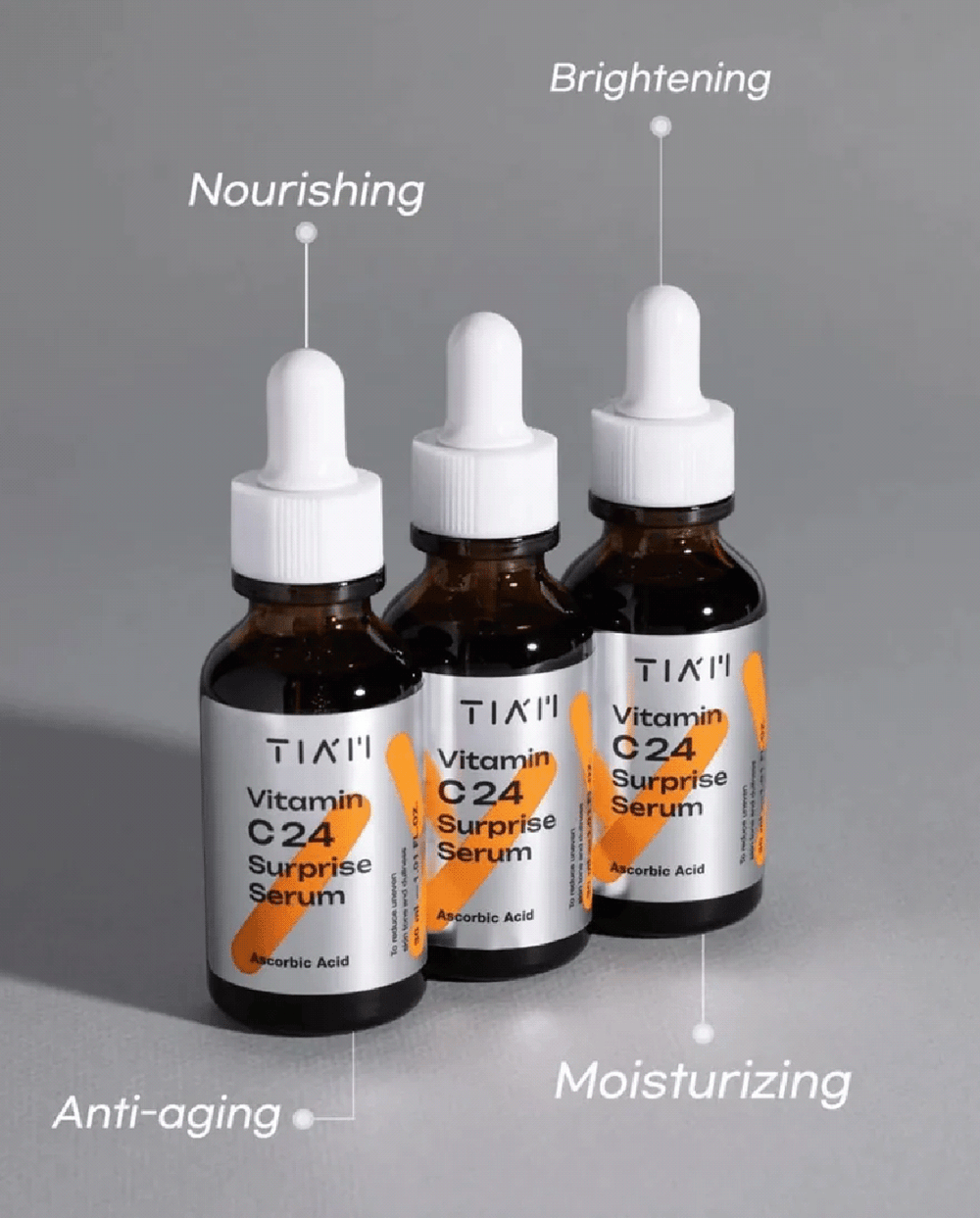 El Vitamin C 24 Surprise Sérum de Tiam es un sérum facial concentrado en vitamina C diseñado para minimizar la apariencia de cicatrices, arrugas y manchas oscuras. Su fórmula antioxidante unifica el tono de la piel, mejora la luminosidad y combate los signos visibles del envejecimiento, siendo seguro para pieles grasas y con tendencia acneica.
