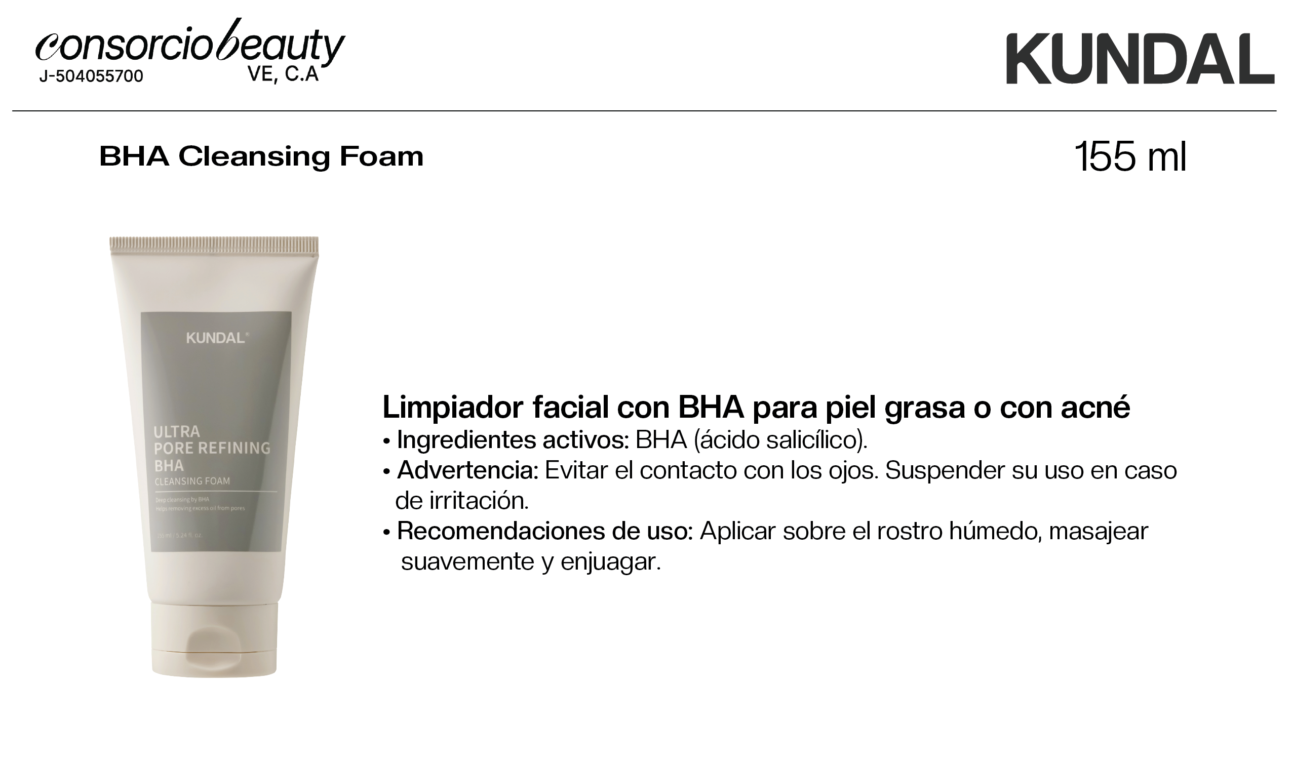 El BHA Cleansing Foam de Kundal es un limpiador facial en espuma diseñado para pieles con tendencia al acné. Su fórmula enriquecida con BHA y artemisa exfolia suavemente la piel, eliminando impurezas de los poros, controlando el exceso de sebo y calmando la piel irritada.