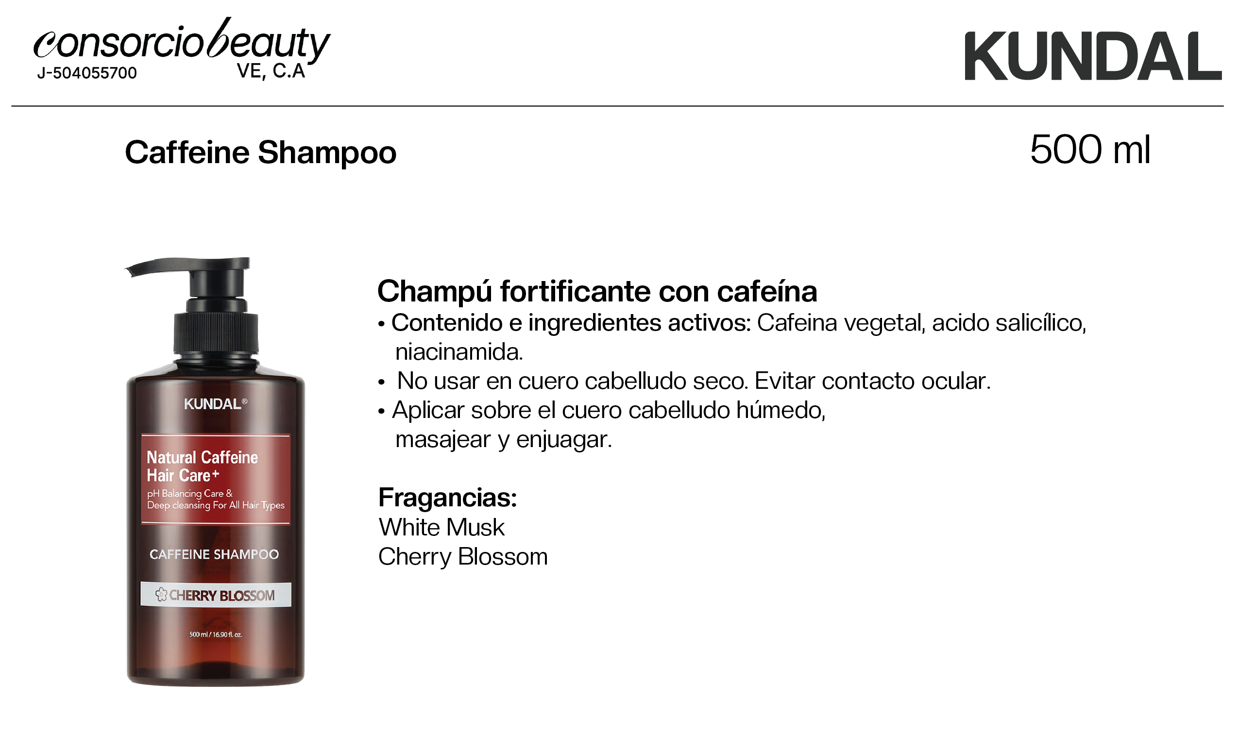 El Caffeine Shampoo de Kundal es un champú formulado para combatir la caída del cabello, fortalecer su crecimiento y revitalizar el cuero cabelludo. Enriquecido con esencia de cafeína vegetal y más de 20 extractos naturales, promueve una melena más densa, fuerte y saludable desde la raíz hasta las puntas.