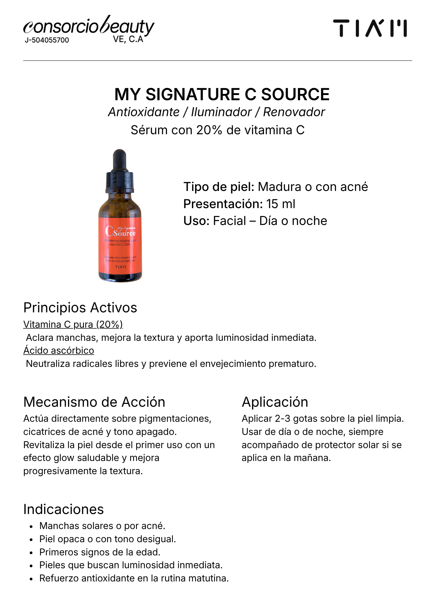 El My Signature C Source de Tiam es un sérum altamente concentrado, enriquecido con un 20% de vitamina C pura (ácido ascórbico), diseñado para atenuar cicatrices de acné, iluminar la piel opaca y mejorar la elasticidad. Su fórmula potente promueve la producción de colágeno, rejuveneciendo e hidratando la piel mientras reduce la apariencia de manchas e imperfecciones.